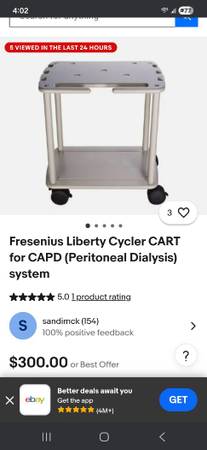 this is a FRESENIUS cart.used in hospitals to transport kidney dialysis machines. if you look these up they are very expensive.i am selling mine at a much cheaper price.i am sure someone could find a hundred and one other uses for this other than what i told you they were made for.its made of heavy duty plastic and has 2 locking wheels.it measures 28 inches high and is 19 inches wide x 26 inches long.the space between the shelves is 21 inches.it has multiple slots on the side of the cart to hang multiple items.if interested CALL OR TEXT TO show contact info